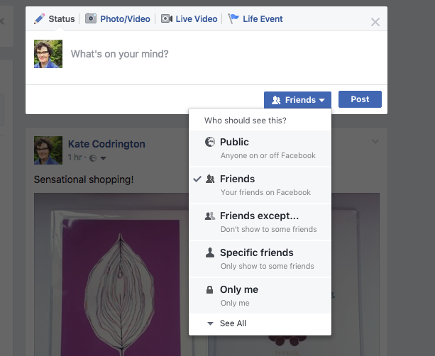 Choose who you want to see your future posts, notice that you can exclude some friends from seeing posts.
