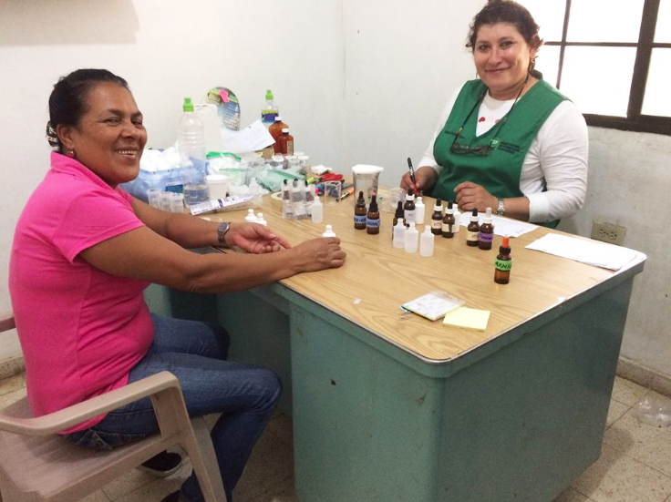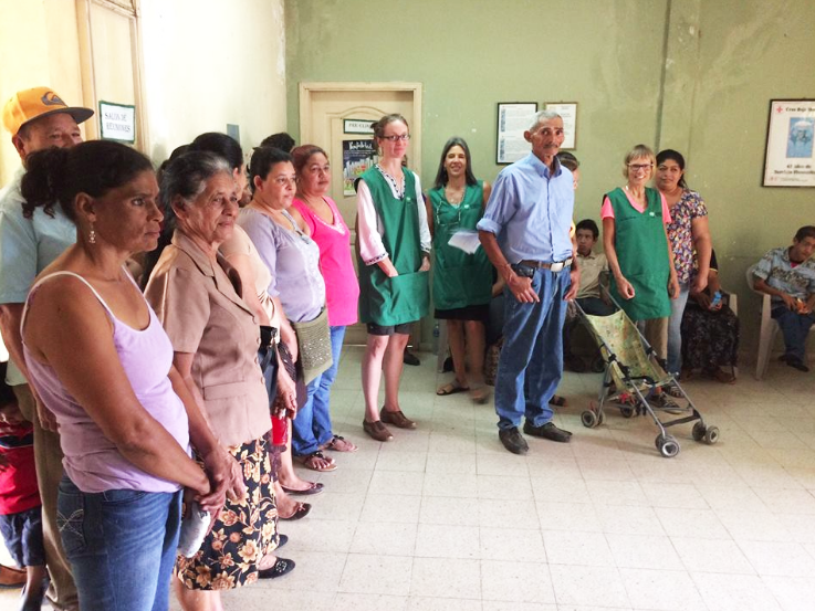 Having never been on a mission and not speaking any Spanish I found myself with a great team consisting of three homeopaths that did speak Spanish, Carla Marcelis, Norbita Medina and Nicole Préault, as well as the local liaison for HTSF in Honduras, Diony Flores. Diony’s husband Jorge Mario was volunteering his time to HTSF but has since become a liaison as well. Once the team arrived and got settled in the hotel, we would go and set up the dispensary office to be able to see patients. In our first town the dispensary was located in the Red Cross building. The team wears the green HTSF colours while on duty partly for safety and partly to present themselves as medical professionals and advertise our presence in the town. Jorge Mario would welcome patients and take their basic information as well as their blood pressure if it was required. He was also responsible for informing the patients how to take their remedies and when to return to the dispensary for either a follow up or refills. Diony was responsible for making the copies of the complexes and remedies for the patients to take home. The idea with the dispensary was that once the mission team had left, patients could come back for refills or further supports if they were simple to prescribe for. A volunteer is trained and placed in charge of each dispensary and available to see the patients that return.