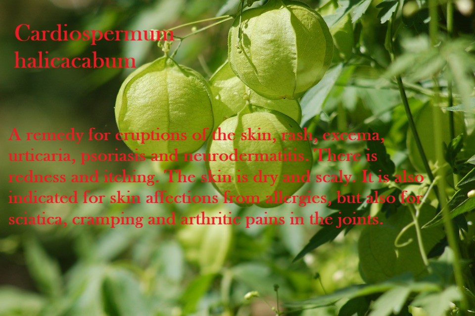 Cardiospermum halicacabum made a world of difference for her. Albeit not being the total cure for her Neurodermatitis, it would calm the pruritus, would silence her irritability and would ease her suffering. Cardiospermum was her constant and much appreciated companion. She would take it and shortly afterwards was relieved of the itching and the soreness. She gradually regained an uninterrupted sleep pattern, and as she said “regained a life”.