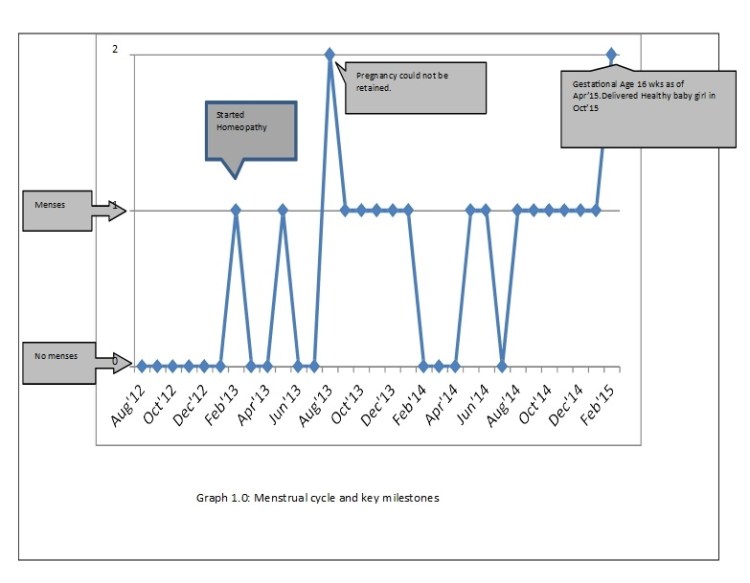 Table 1.0 shows her hormonal panel done between Nov-12 and Dec-13. Her homeopathic treatment was started on 21-Feb-13.