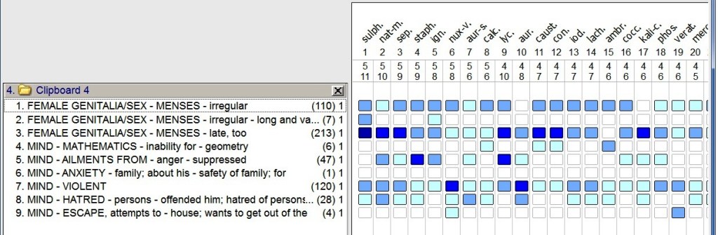Nat. mur, staphysagria, Ignatia, Nux vomica, Sepia and various remedies came up.