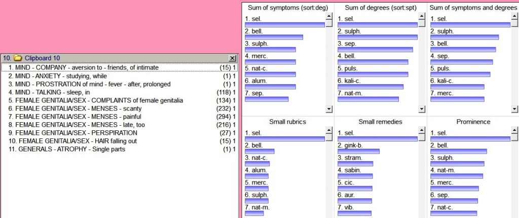 If we see the rubrics according to sum of symptoms and degree,small rubrics,small remedies and prominence,Selenium came up.1